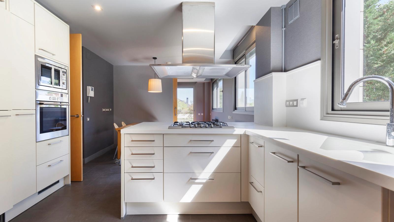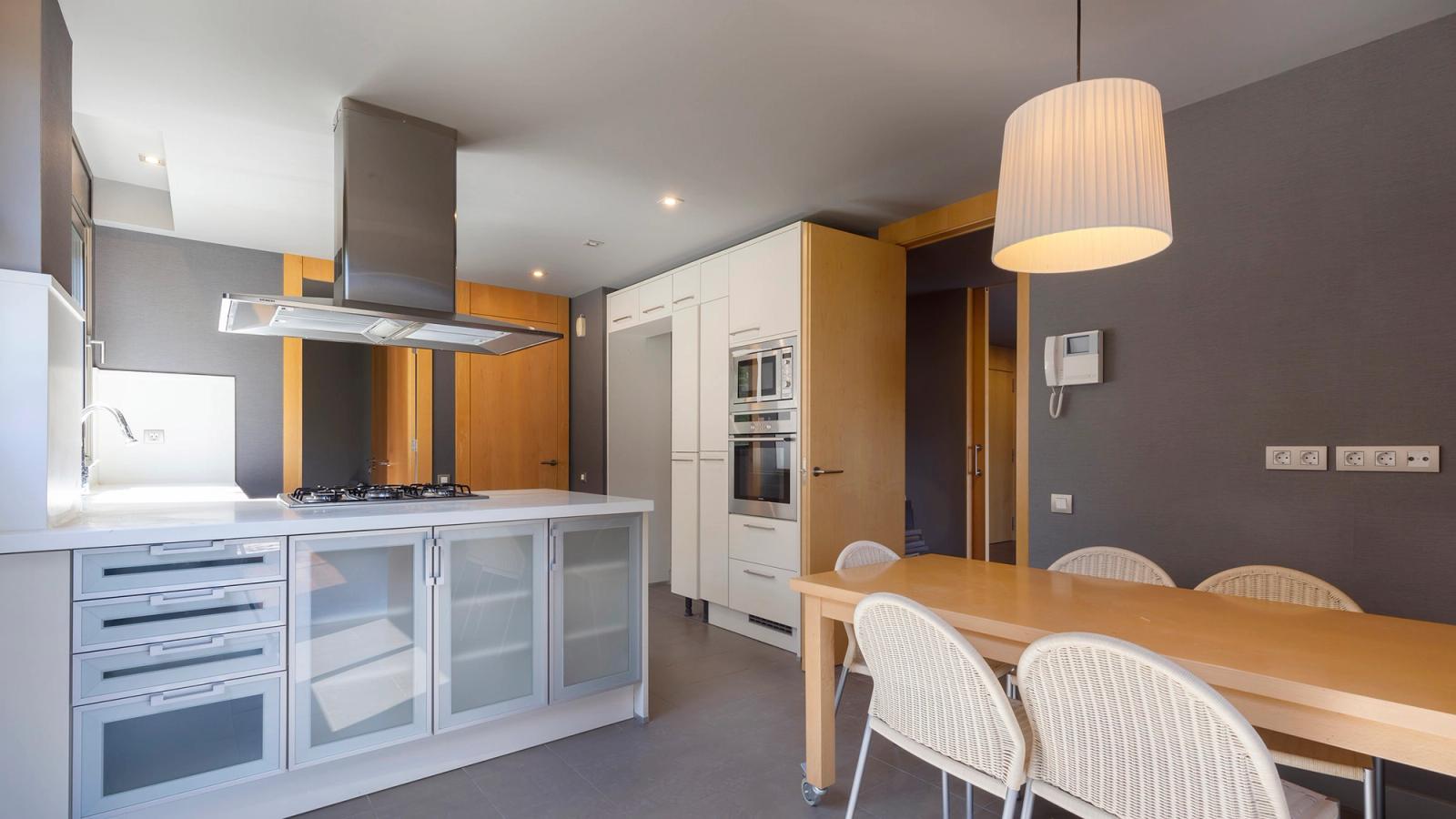 Les cuines independents office estan equipades amb placa de gas, forn, microones i campana extractora, oferint funcionalitat i comoditat.