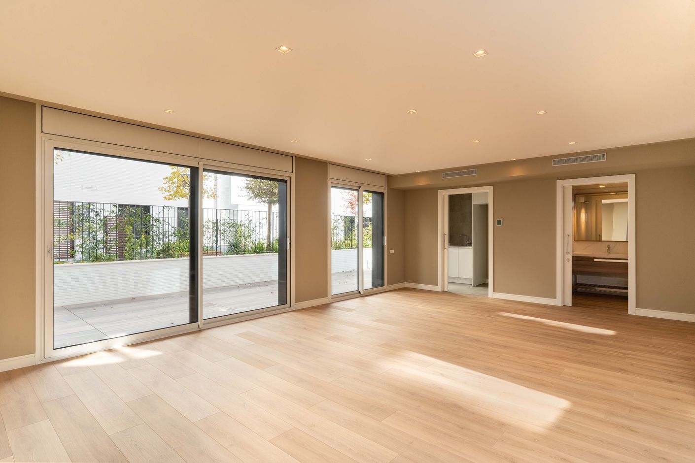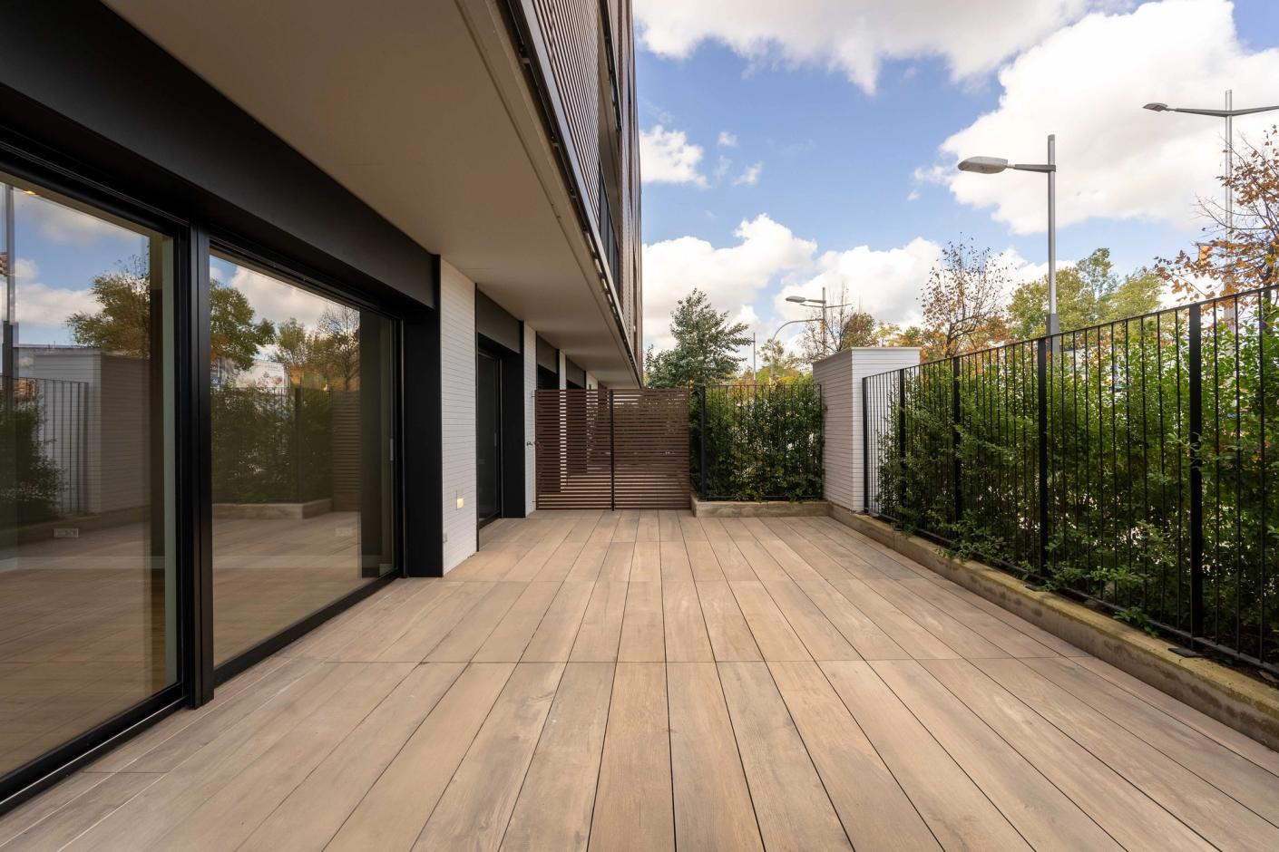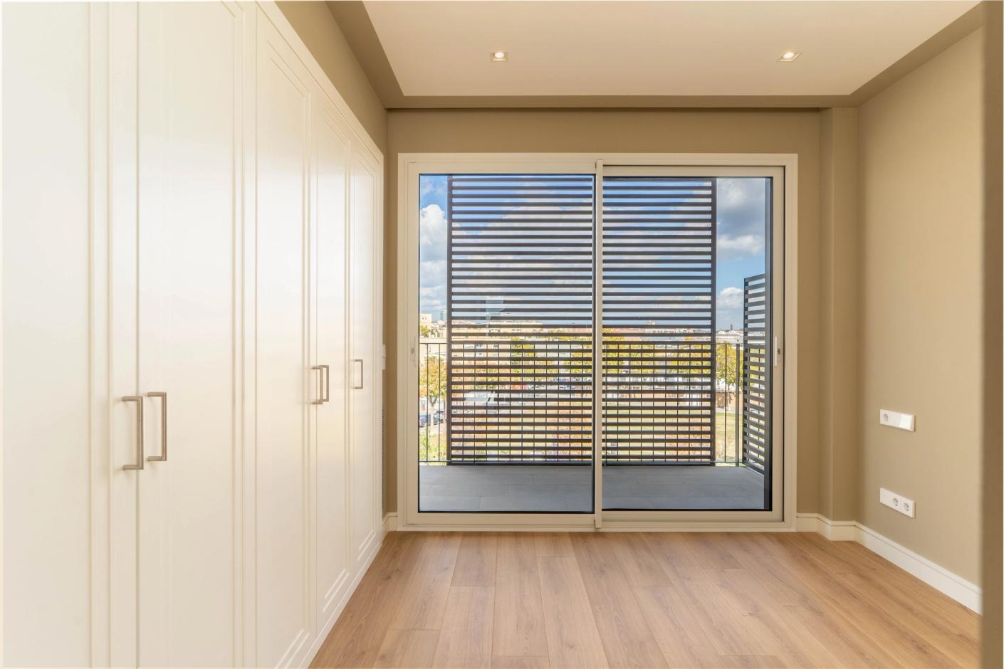 Tots els pisos disposen de grans finestrals per fomentar la ventilació i la il·luminació natural dels interiors, a més, armaris encastats als dormitoris. Àmplies terrasses i si desitges una de més gran, l'edifici també ofereix les plantes baixes amb terrasses des de 15 m² fins a 22 m².