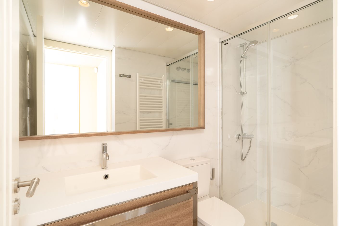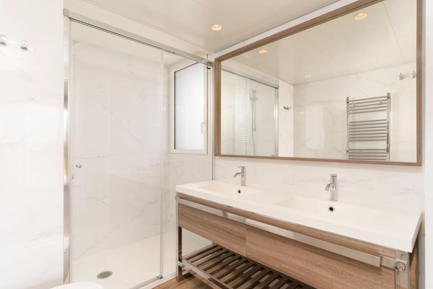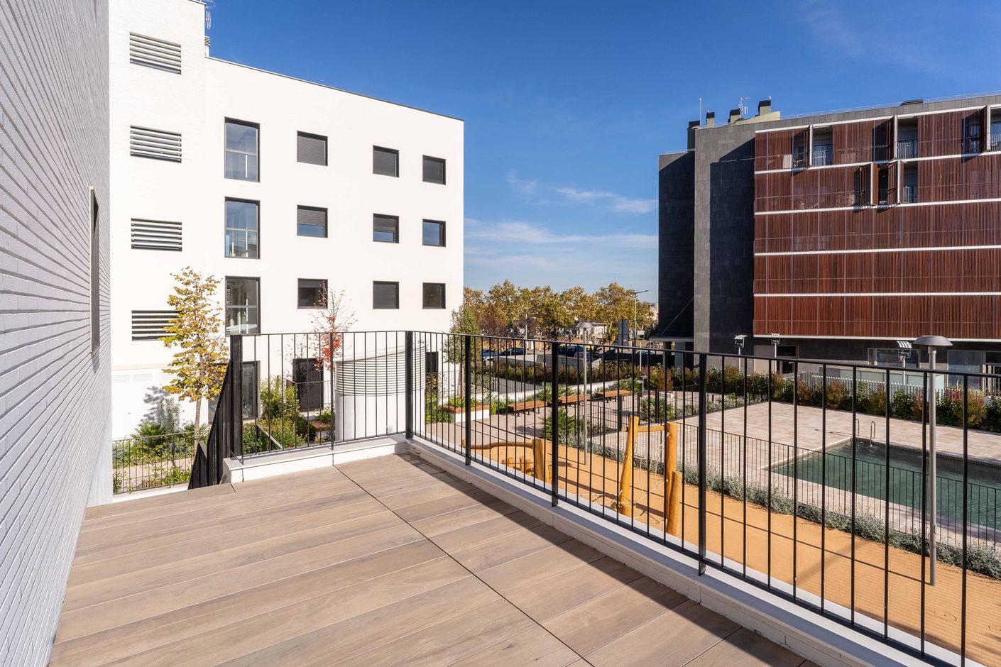Tots els pisos disposen de grans finestrals per fomentar la ventilació i la il·luminació natural dels interiors, a més, armaris encastats als dormitoris. Àmplies terrasses i si desitges una de més gran, l'edifici també ofereix les plantes baixes amb terrasses des de 15 m² fins a 22 m².
