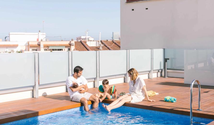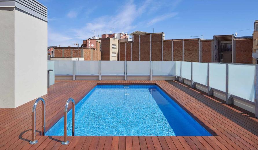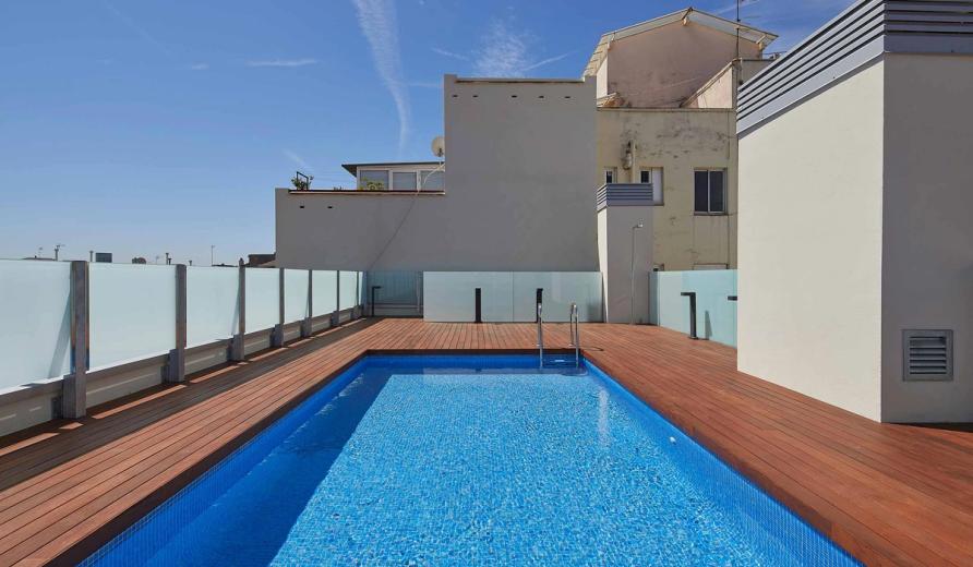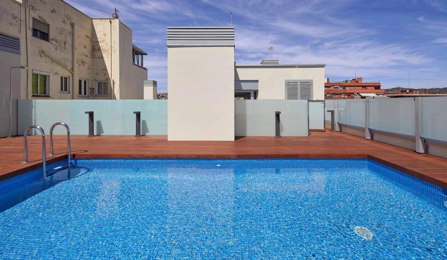 Communal area on the roof with pool and solarium area, which will share space with the clothes drying area, building-related installations and solar energy collection system.