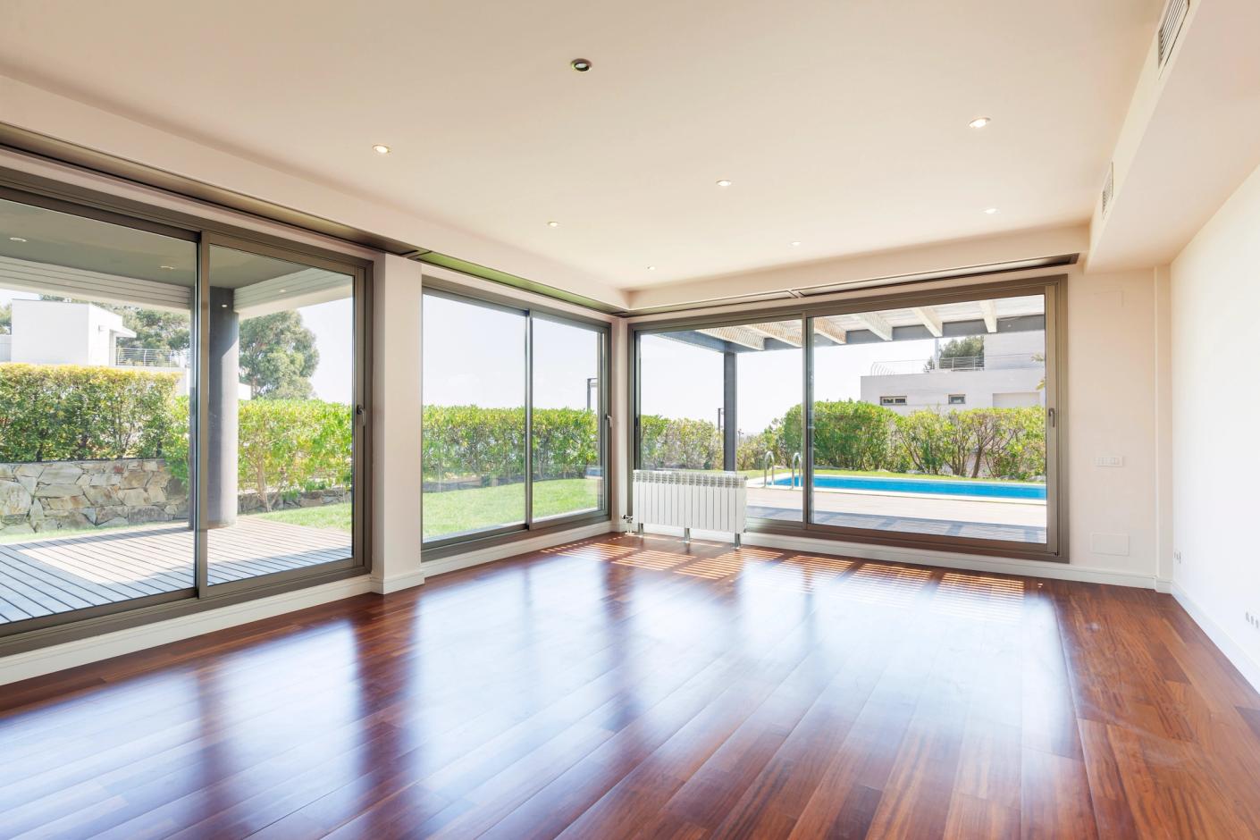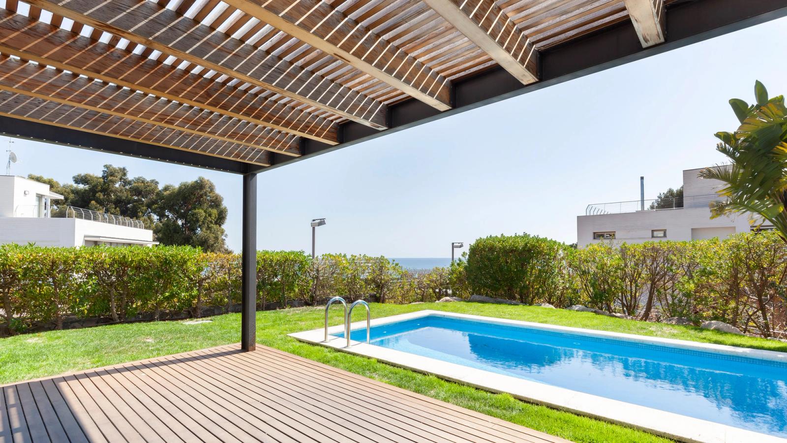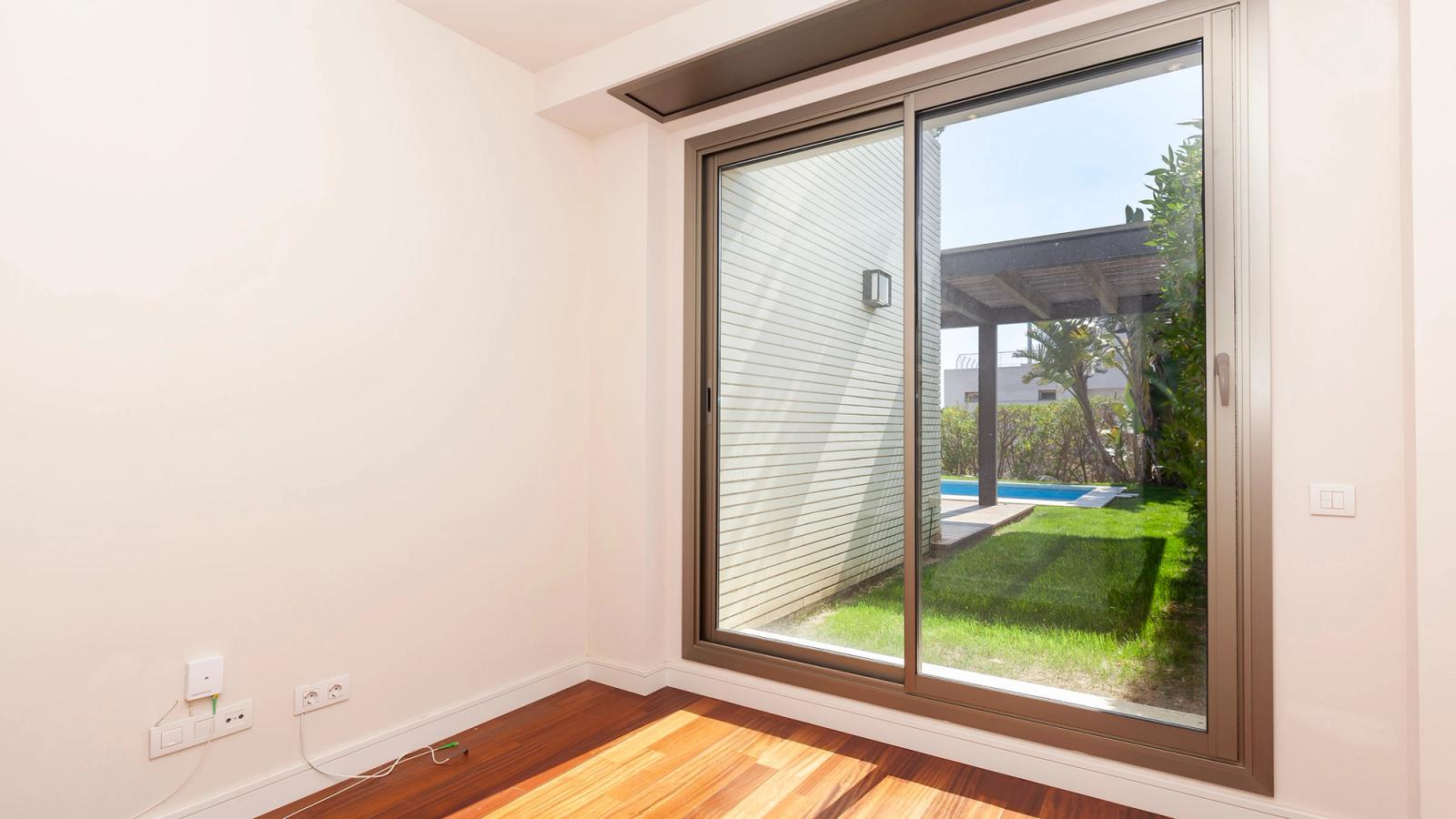 Single family houses with large living room and study area, dining room with access to garden and private swimming pool, with automatic awnings to provide the best environmental settings whatever the time of day.