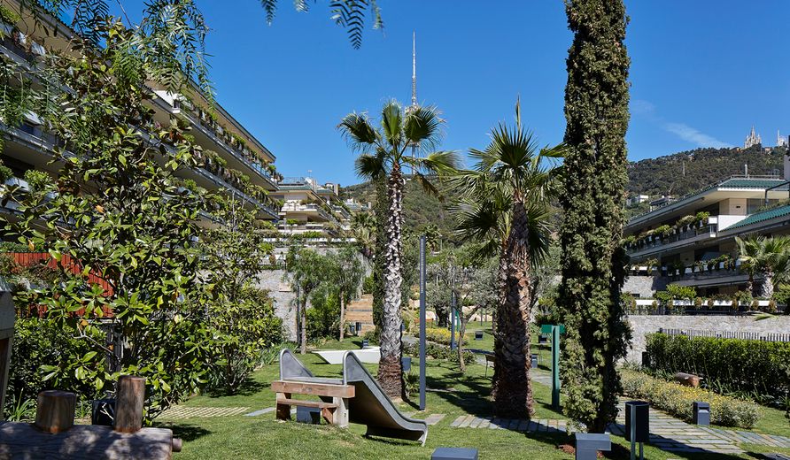 Residential complex located at the foot of Tibidabo with access to over 17,000 m2 of gardens, swimming pools, padel tennis courts, sports centre and children’s play area. Fast connections to the city centre and surroundings via the Ronda de Dalt. A high-status residential area from which to enjoy one of the best views over Barcelona.