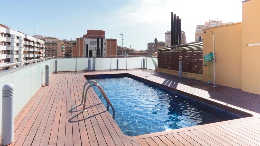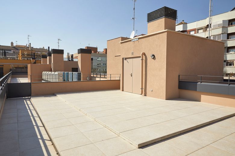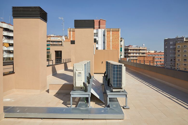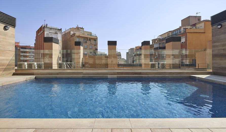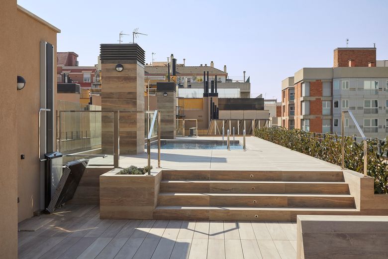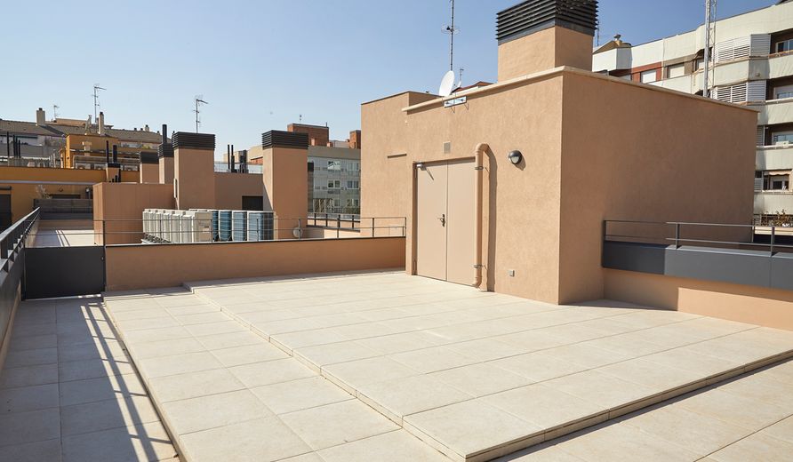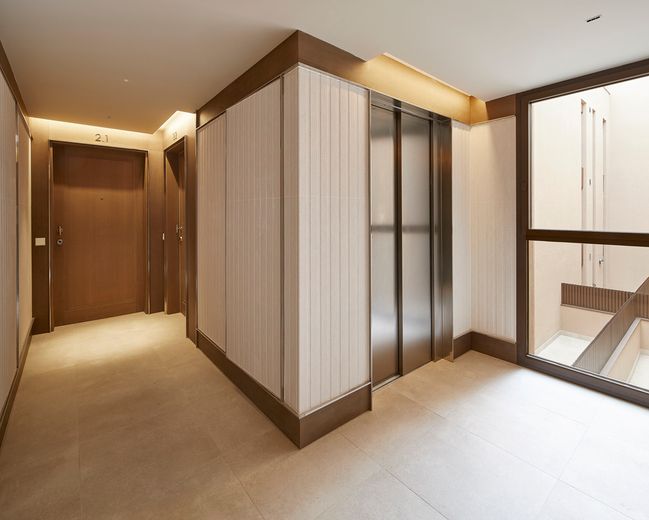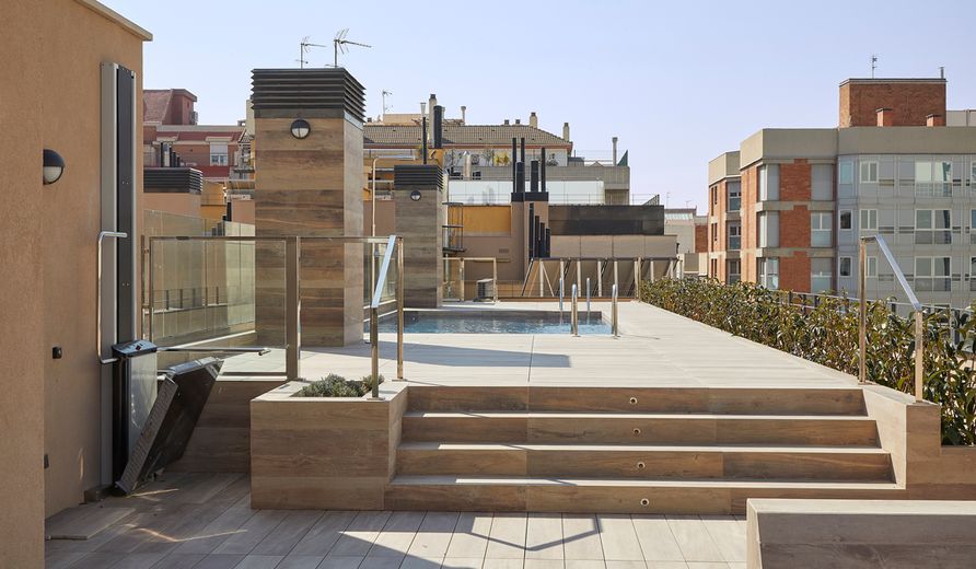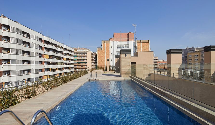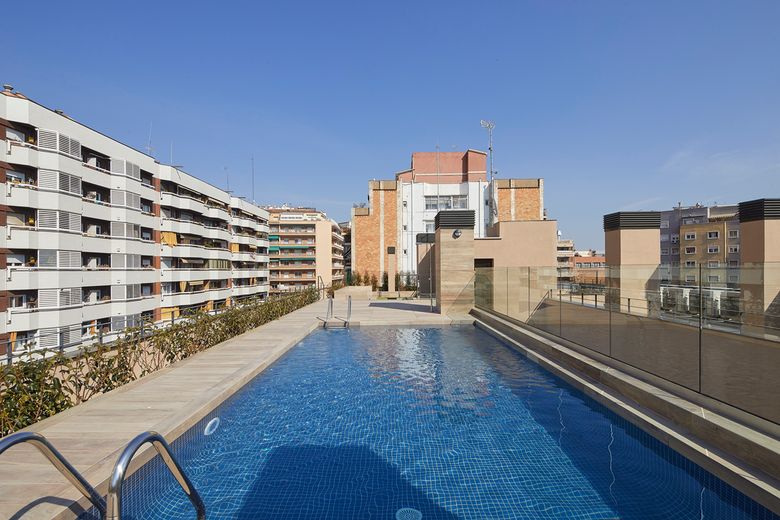 All the flats are directly connected by lift both to the basement, with 5 floors of parking for motorbikes and cars, some of them with storage room, accessed from 74 Pau Alsina Street, and to the rooftop, where you can enjoy the communal swimming pool and landscaped solarium.