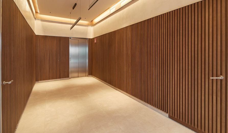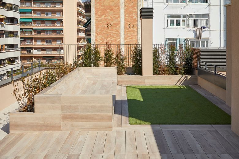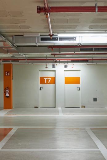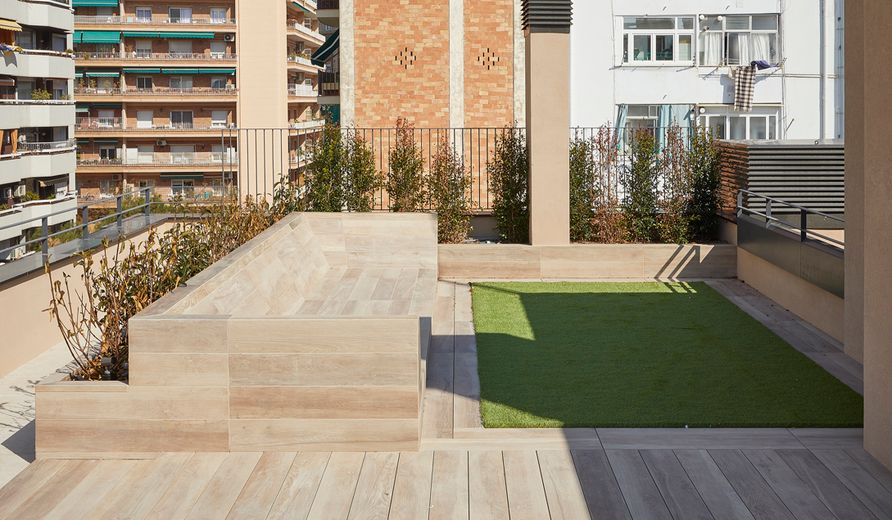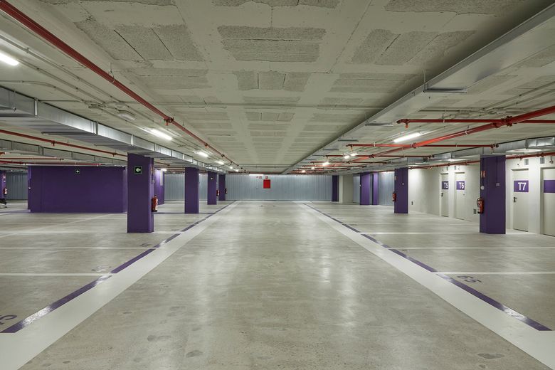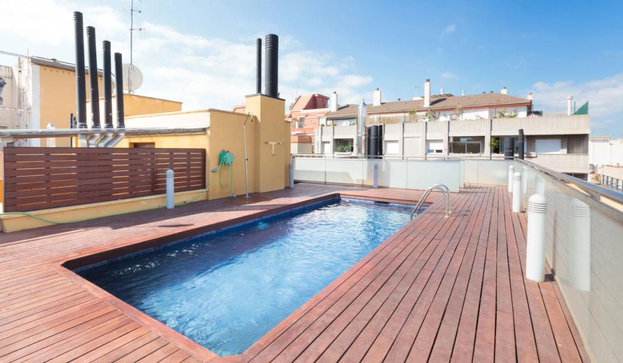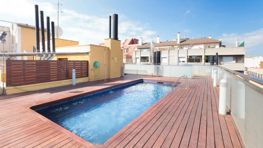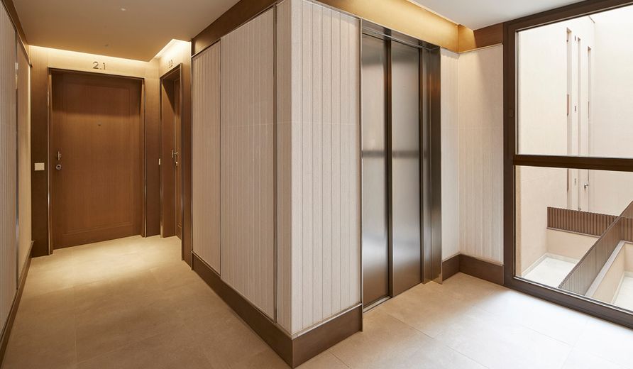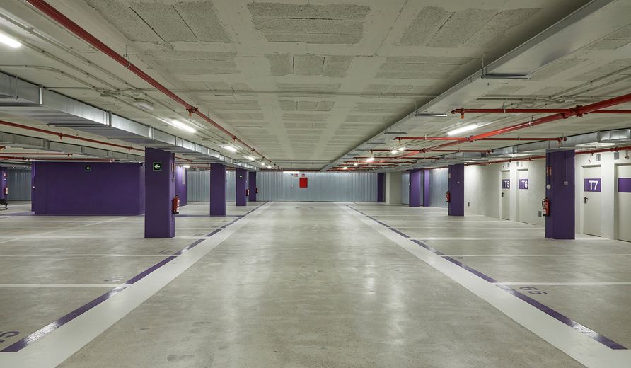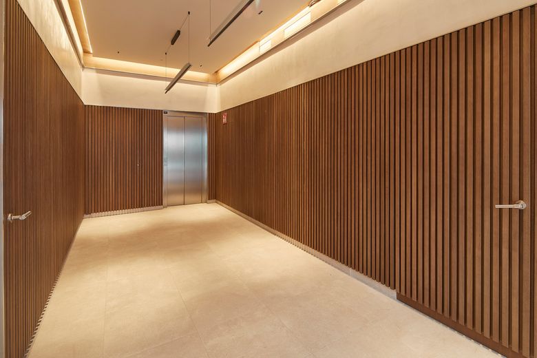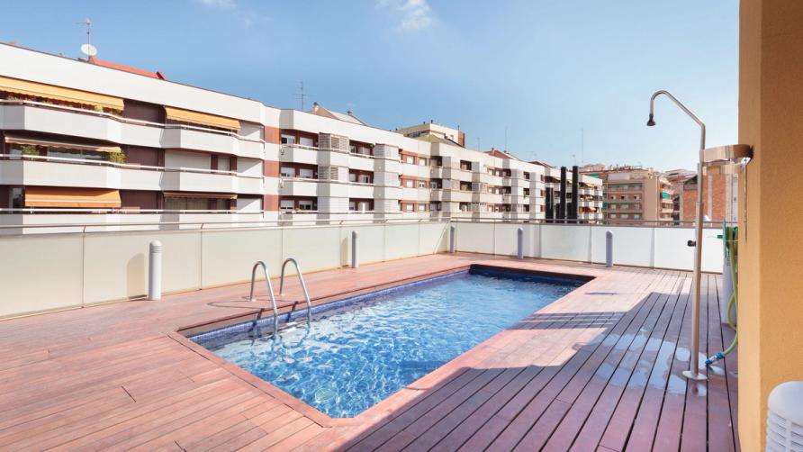All the flats are directly connected by lift both to the basement, with 5 floors of parking for motorbikes and cars, some of them with storage room, accessed from 74 Pau Alsina Street, and to the rooftop, where you can enjoy the communal swimming pool and landscaped solarium.
