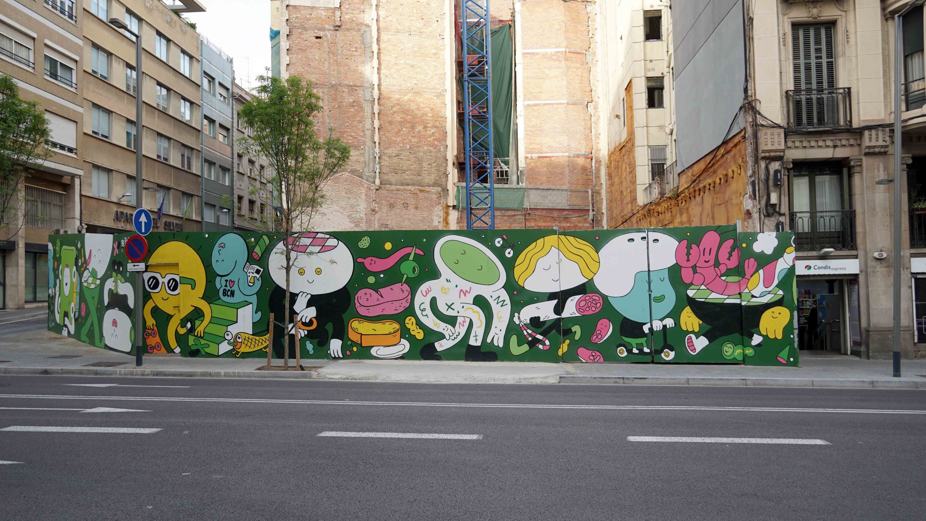 They themselves claim to be “brothers, friends, enemies, illustrators, artists, electronics apprentices, amateur videographers, lovers of fuet sandwiches, fathers, sons, husband/boyfriend, teachers, and occasional musicians”. We discover with them the mural on Av. Riera de Cassoles, 6 which they participated in for the NN Wallery urban art project initiated by the Núñez i Navarro Group and which you can continue to see on our website.