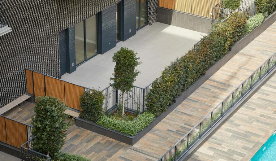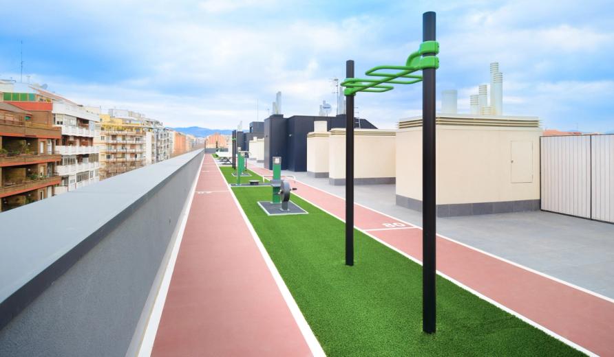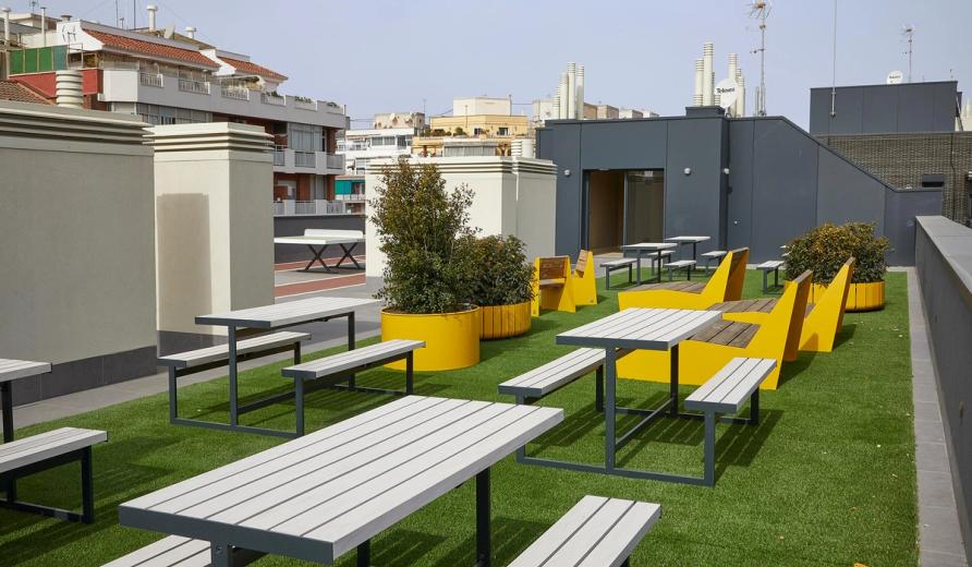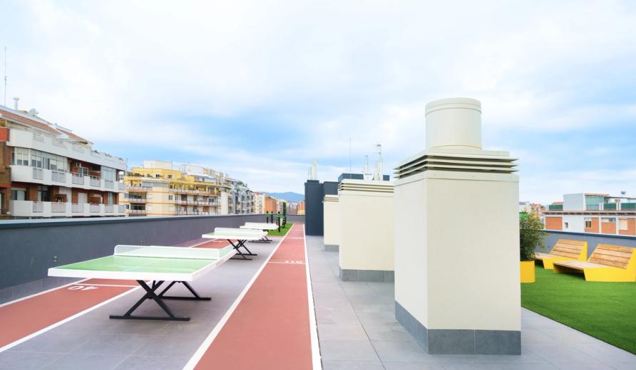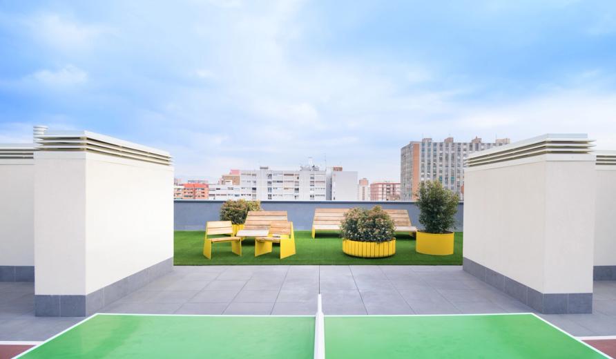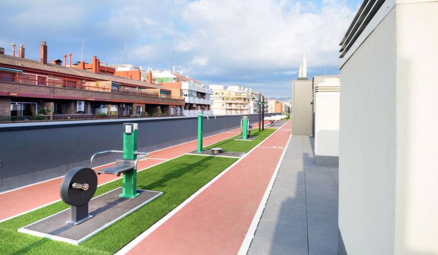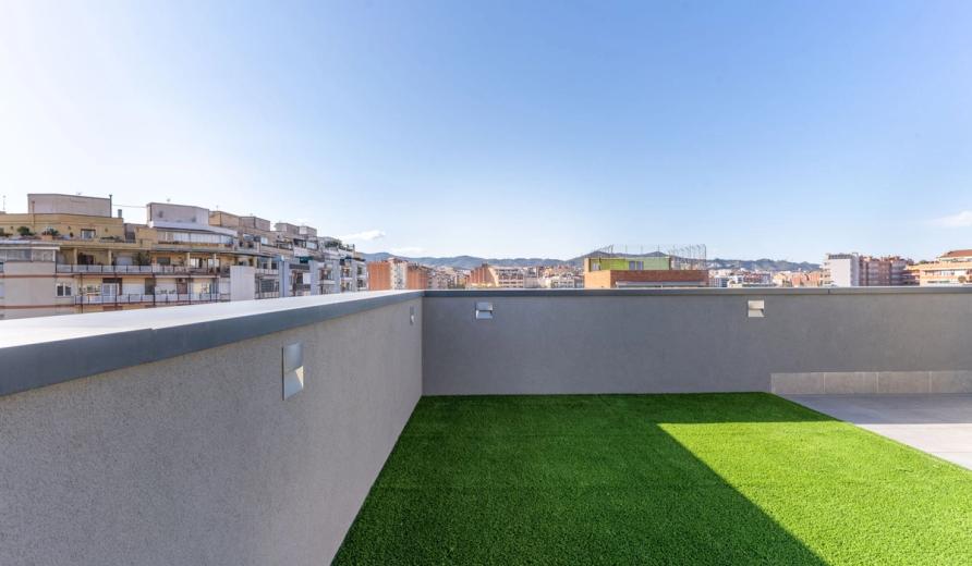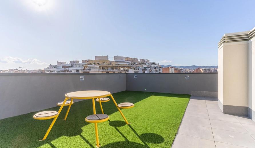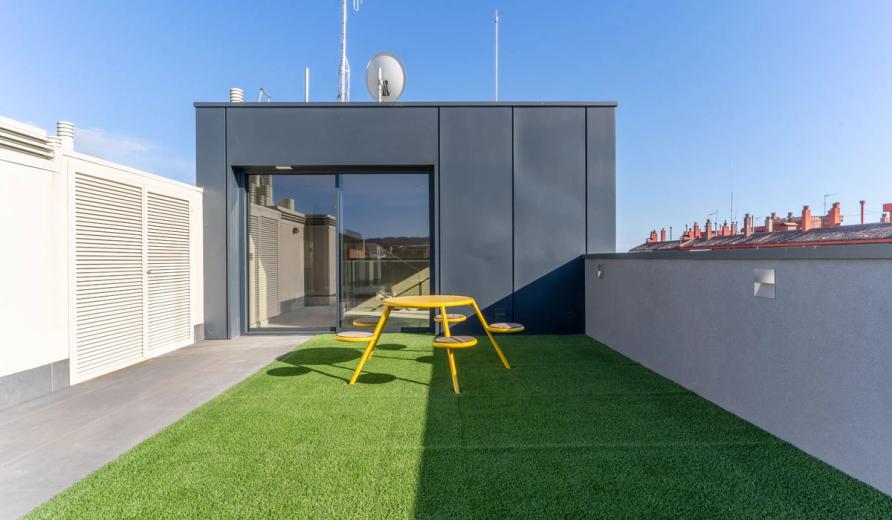 Todas las viviendas cuentan con terraza o balcón con cerramientos de lamas de aluminio para proteger de la radiación solar y matizar el contacto directo con el exterior.