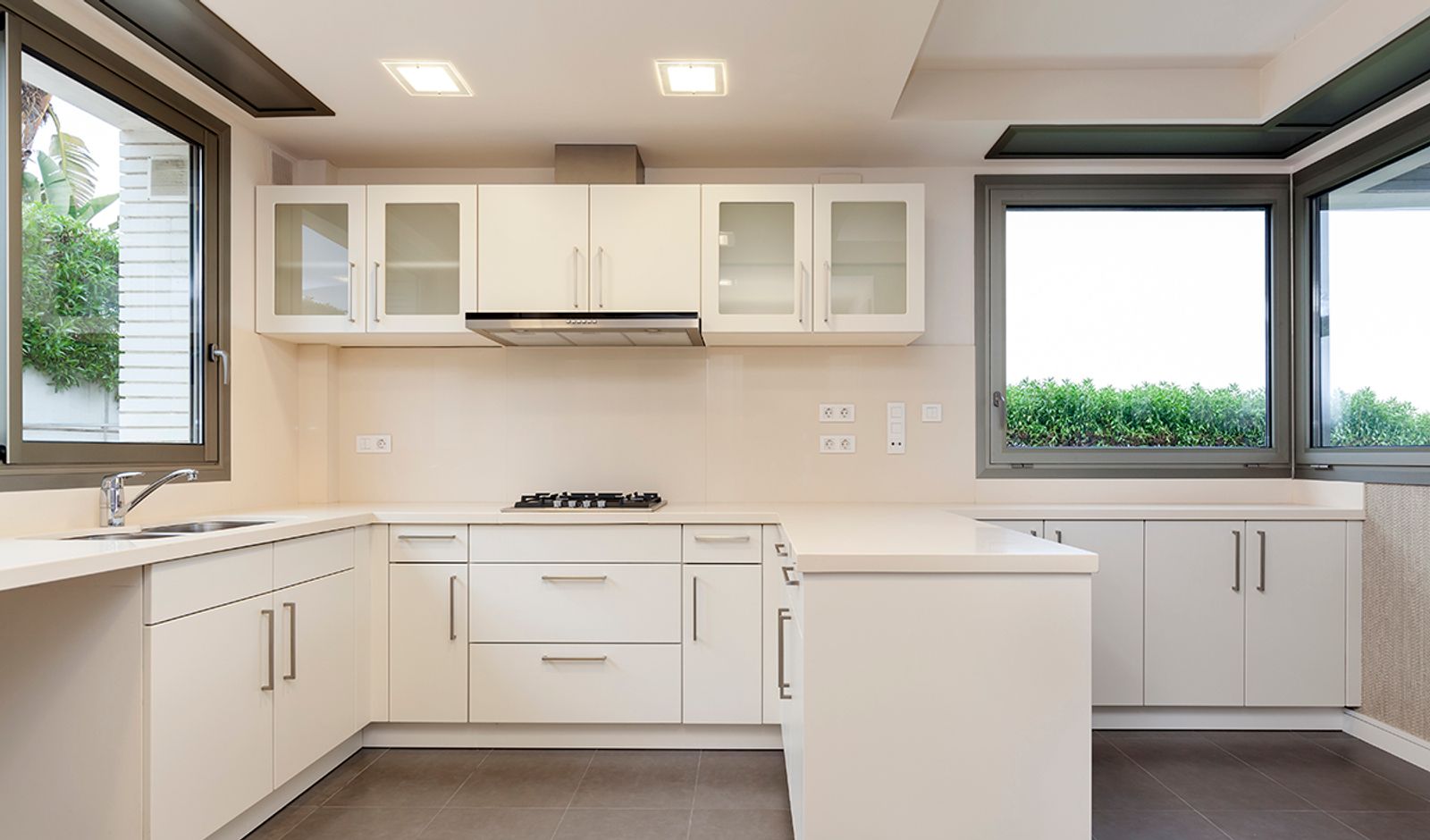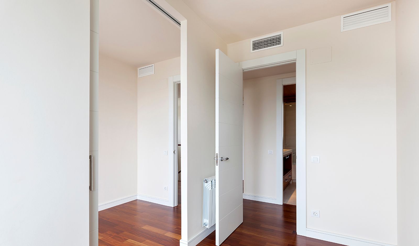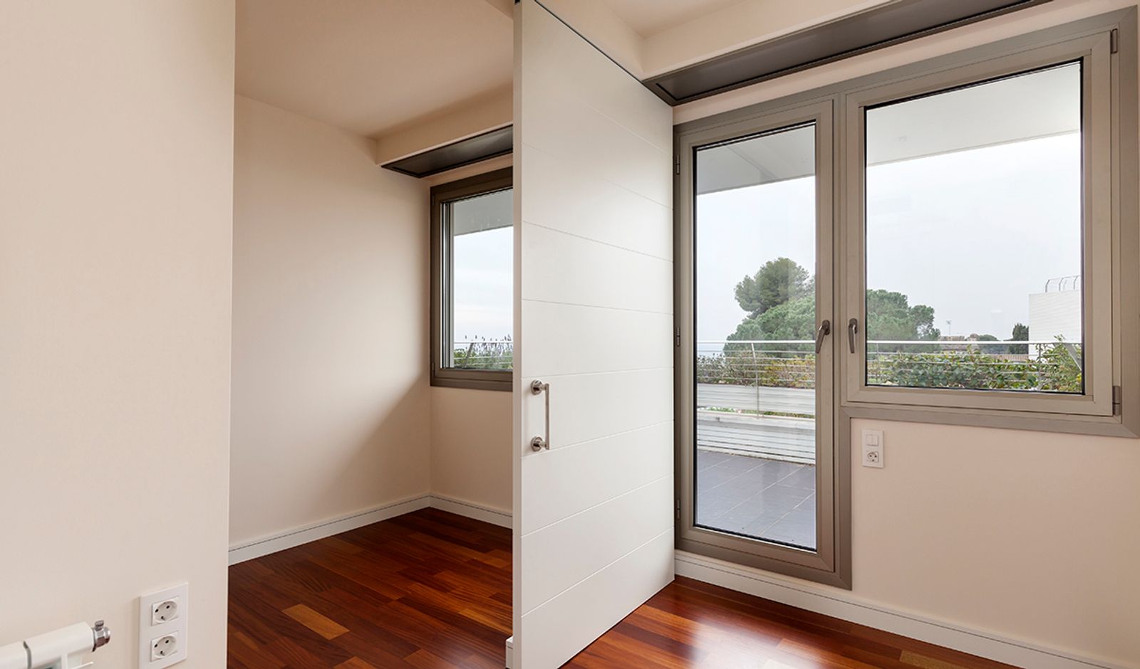 Cocina office equipada con horno, microondas y campana extractora. Suelos de parqué, calefacción de gas por radiadores, armarios empotrados, cerramientos de aluminio y persianas eléctricas, a la última en domótica del hogar.